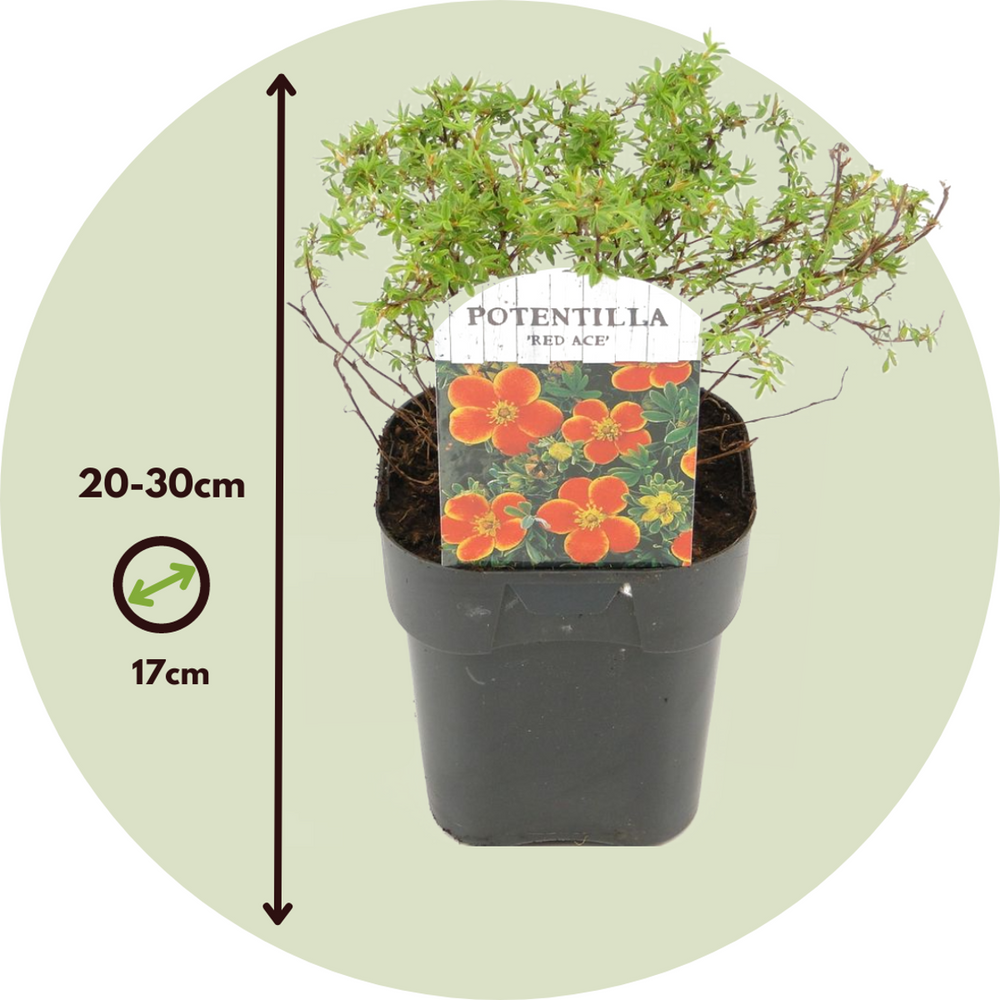 Mochna křovitá, v Nizozemsku známá také jako mochna, je jedním z nejoblíbenějších nízko rostoucích keřů. Pochází z hor a je ideální do skalek, na suché zdi nebo dokonce mezi dlažební kostky. Tato sada obsahuje dvě rostliny mochny křovité Red Ace. Mochna křovitá 'Red Ace' kvete výraznými oranžovočervenými květy od července do září.